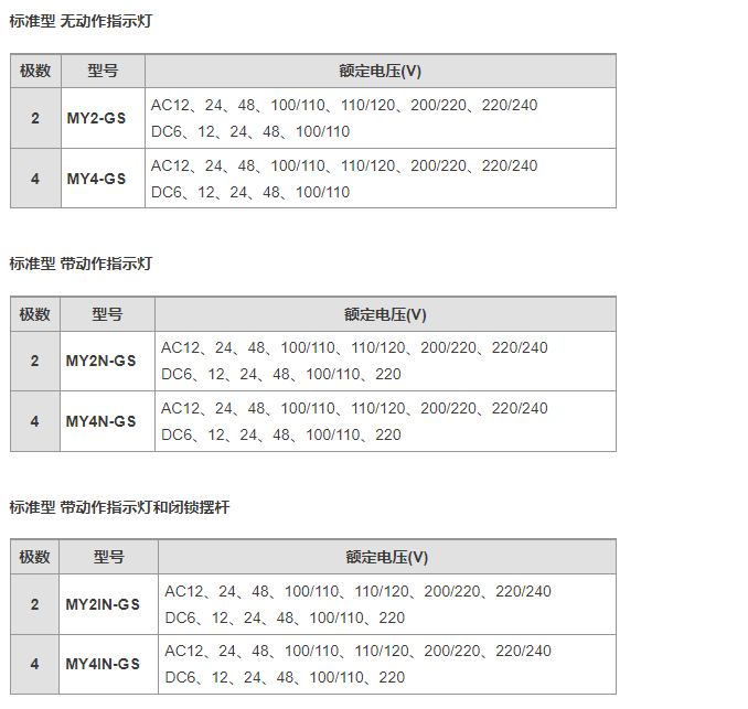 歐姆龍微型繼電器MY2N-GS系列產(chǎn)品種類介紹:
