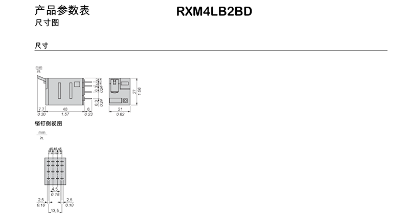 施耐德繼電器一級(jí)代理商,施耐德RXM中間繼電器,施耐德小型繼電器,施耐德插入式繼電器RXM4LB2BD產(chǎn)品尺寸圖