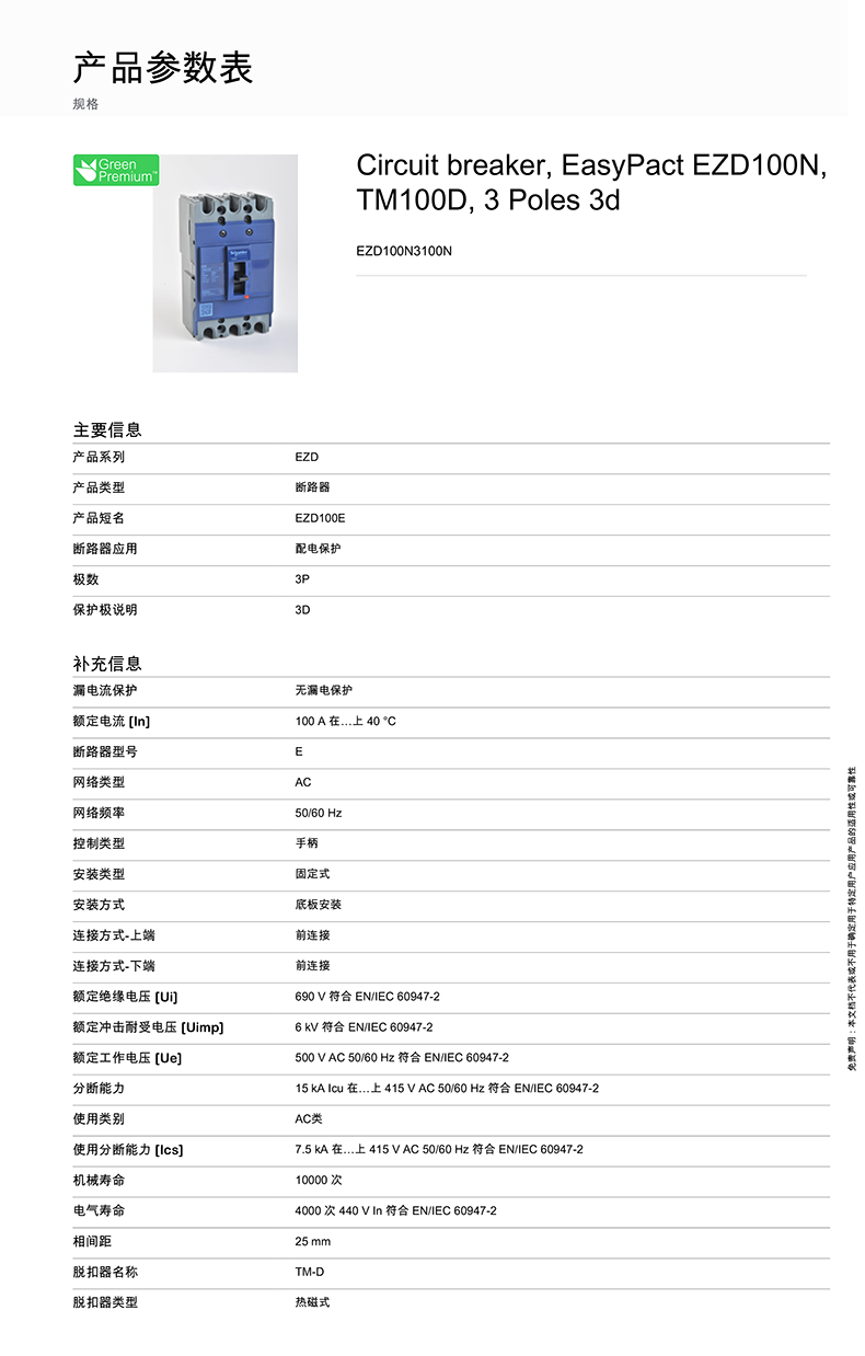 簡介內(nèi)容:施耐德塑殼斷路器EZD系列配電用固定式斷路器EZD100